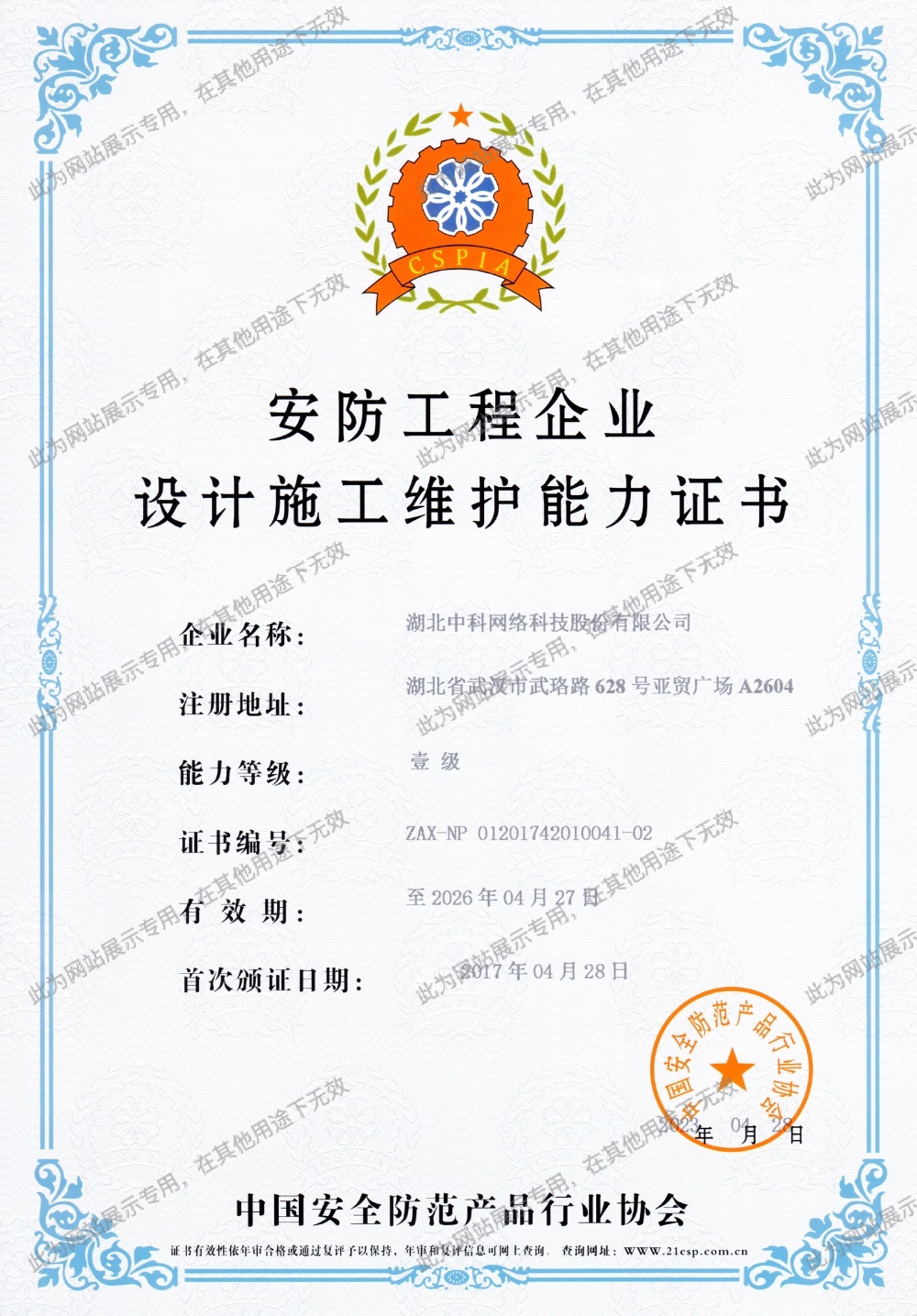 • 國家安防工程企業(yè)壹級(jí)資質(zhì)