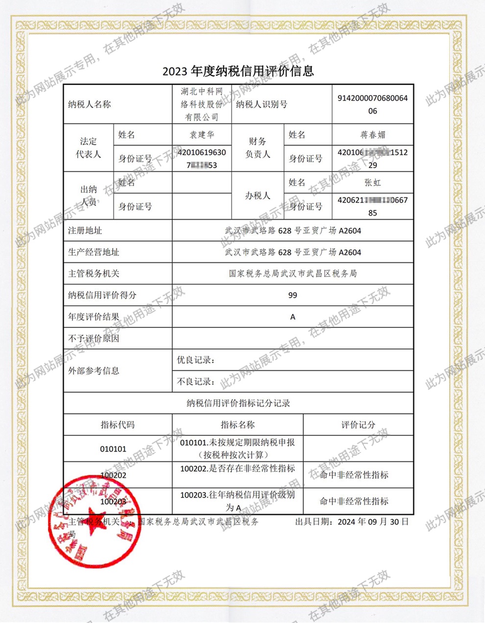 • A級(jí)納稅企業(yè)